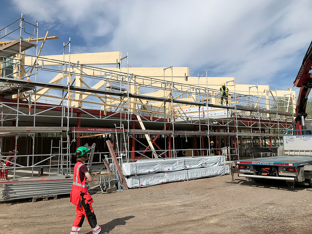 Bygget er direktefundamert plate på mark med kantforsterking. Plan 1 er oppført i stål med hulldekker. Plan 2 består av massiv bærende trekonstruksjon med relativt komplisert takkonstruksjon av limtre for å bære takelementer. Taket er «usymmetrisk» saltak, som har medført «hyggelige utfordringer» for både RIB, Moelven, Lett-Tak og Atlant under prosjektering, produksjon og montering.